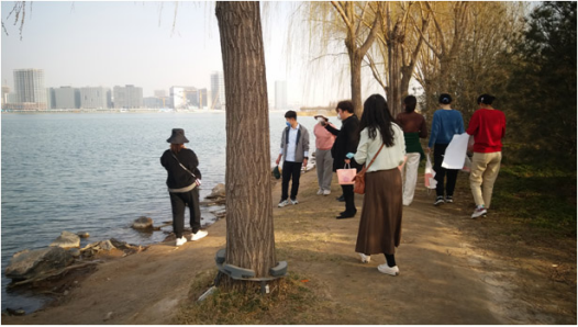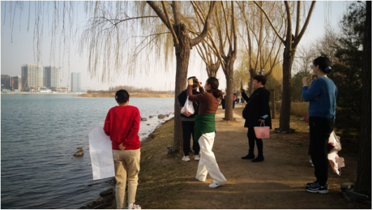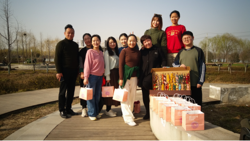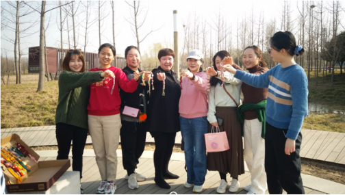 3月8日下午,天气晴好,微风吹拂。在曹国强书记、李莉副书记带领下,美术学院女老师们纷纷驾车前往郑州森林公园。迎着北龙湖和煦的轻风,金融岛历历在目,草地上欢歌阵阵,视野开阔,杨柳依依,水光潋滟,风光宜人。李莉副书记把女工委员会精心准备的手工编织小礼品展现给大家,各位老师三五成群在湖滨公园游园踏青,吃草莓,拍美照,晒青春,欢声笑语,自得其乐。女老师们在轻松愉快的氛围中涂口红,描眼影,肆意享受着春天的美好时光,大家互相拍照留影,让青春更加靓丽,让时光从此驻足。大家拿出看家本领竞相比试,找角度,抓动态,调美颜,把手机摄影的功能发挥到了极致,你一言我一语,在互拍互动中凝聚了感情,增进了友谊。不知不觉已近下午六时,踏青摄影活动在热闹祥和的气氛中结束,大家各自抱得礼品满意而归,奖品待摄影作品评比后择日发放。