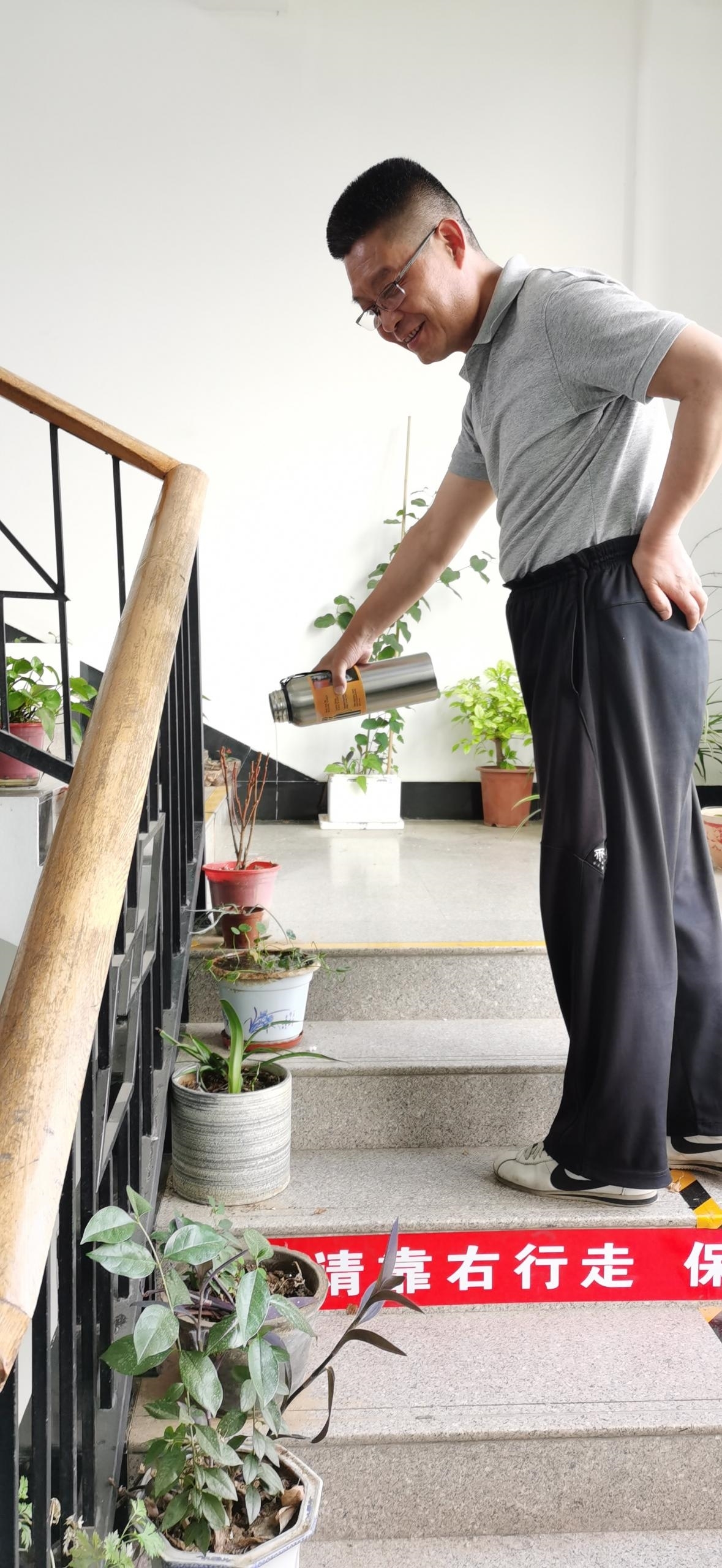 王宏书记身体力行,带头把自家的绿植移栽到学院的走廊等处,把各种盆景布置在平台和楼梯间等处,老师们纷纷响应,把自家的盆栽绿植移种进办公场所,积极为美化院系环境做贡献。