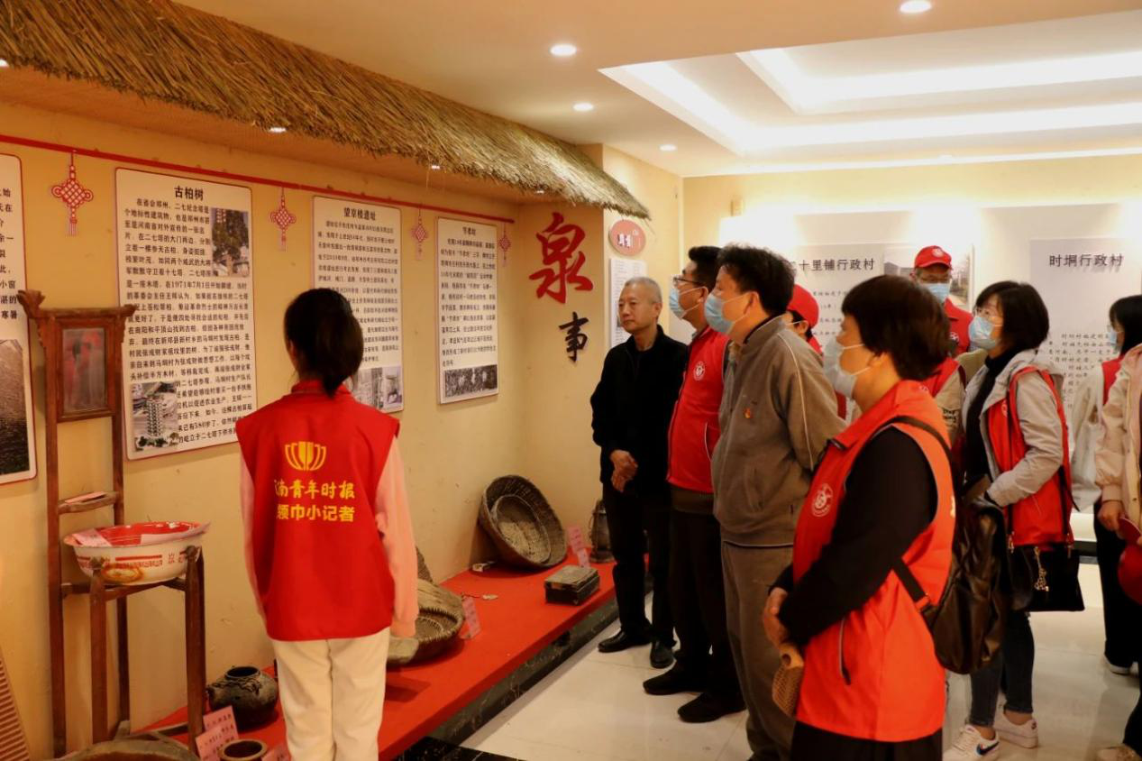 接着一行人在村支书的带领下来到暖泉湖社区村史馆,馆内由新建完全小学的少先队员代表作为讲解员,这些少先队员从社区的村史、村风、村貌以及衣食住行等方面为在场的老师同学讲解暖泉湖社区的发展历程。之后,大家来到党建展览厅,浏览展厅内的展品体会党史文化,以及百年党史发展历程。参观结束后,文学院党员干部以及老师在党建展览厅重温了入党誓词,再次面向党旗进行了庄严宣誓。