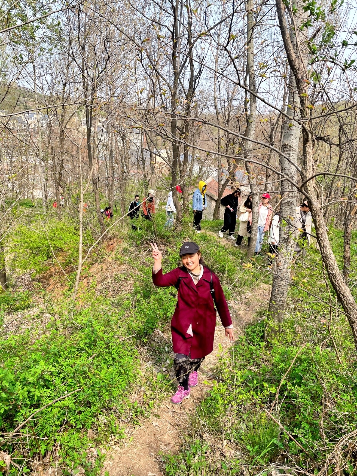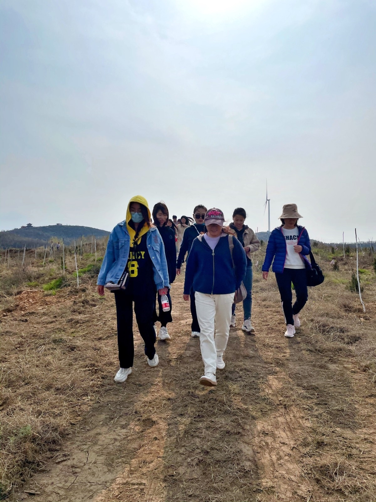 园区山路不太陡峭,对一些喜欢户外活动但体能不太强的老师来说,恰到好处。活动中,大家沿着当年八路军走过的路,用一步一个脚印的方式,缅怀先烈,追思英雄。尽管老师们汗流浃背、气喘吁吁,但也没有人半途而废。她们互相鼓励,互相帮助,以积极进取、勇攀高峰的精神向高处攀登。经过两个小时的努力,老师们纷纷登上山顶。