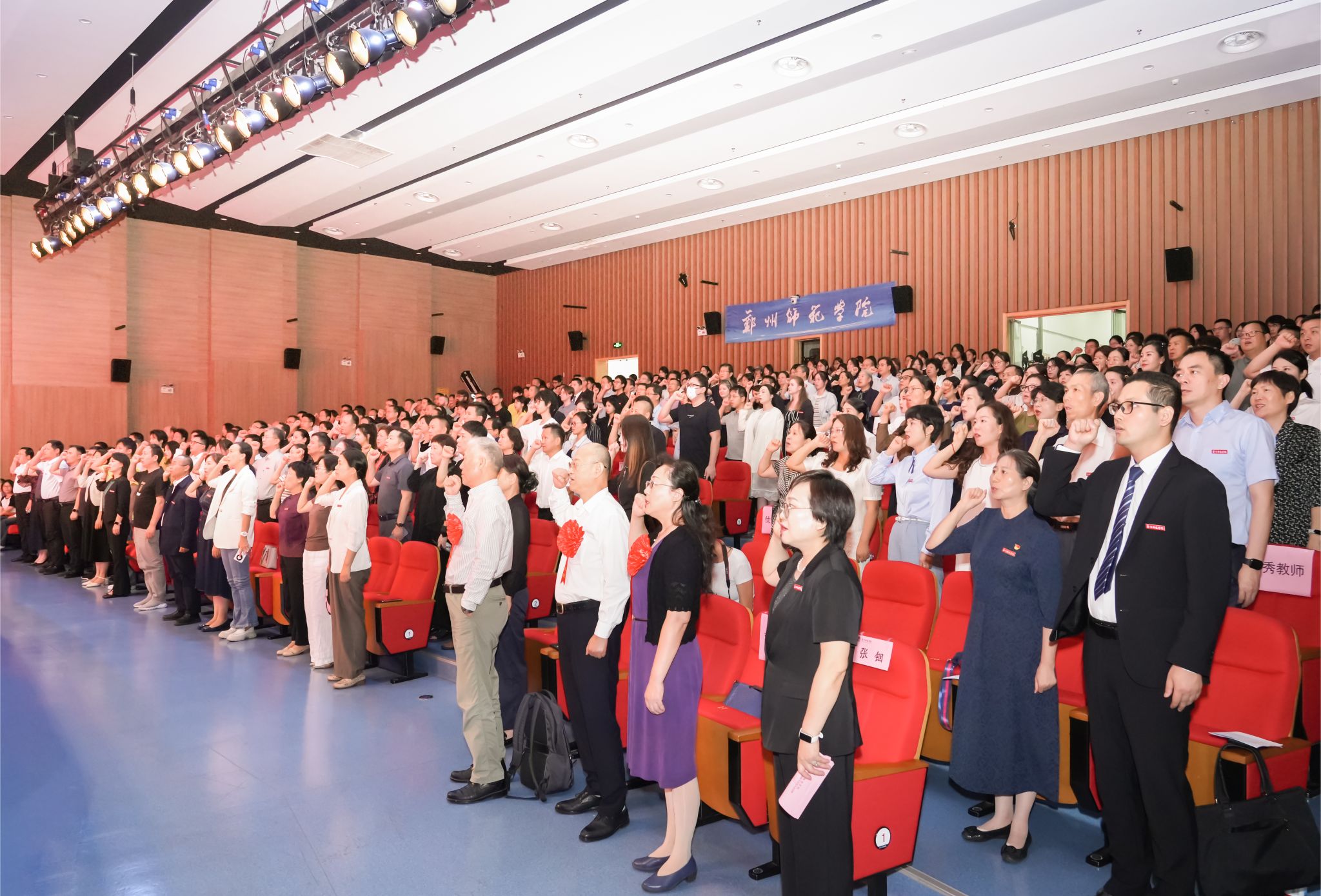 青年教师代表特殊教育学院郭志云、河南省优秀教师代表初等教育学院张厚萍作交流发言,全体与会教师重温《教师誓词》,党委教师工作部部长董晶晶领誓。