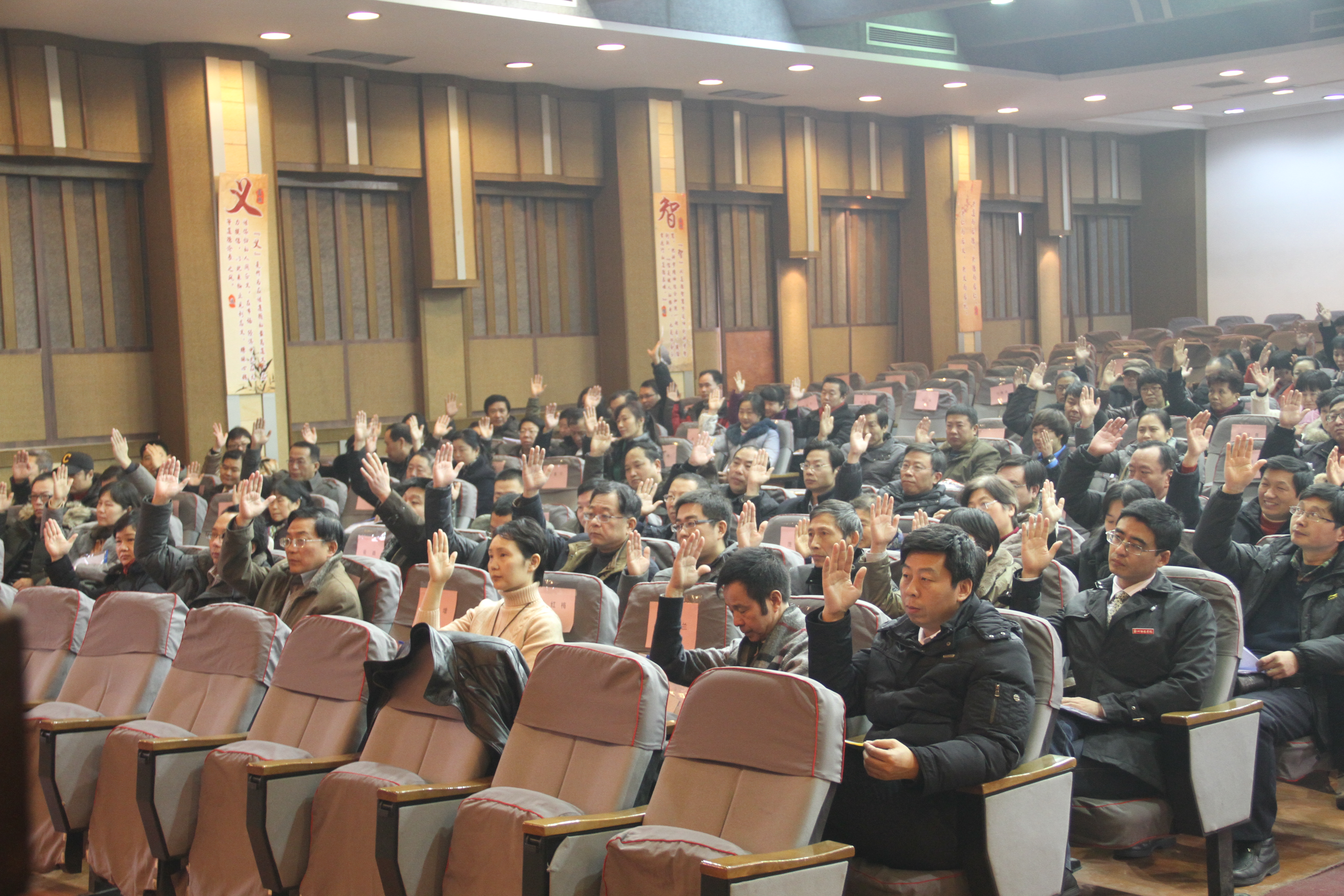 2013年1月19日上午,我校一届四次双代会在6号音乐厅隆重召开。参加会议的正式代表166名、列席代表105名。大会主席团成员在主席台就座。
